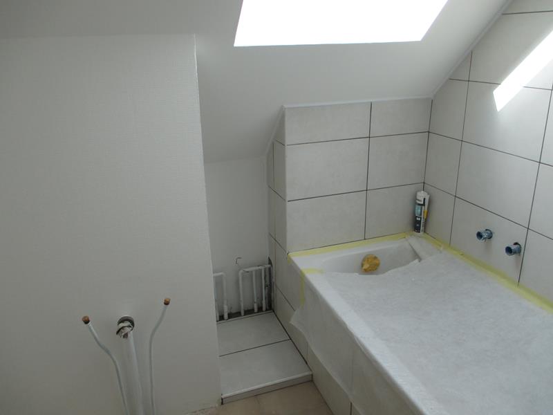Parmi les travaux réalisés : démontage de l'ancienne cuisine, dépose de tapisserie, de moquette et de lino, reprise des trous à l'enduit, ponçage des murs et des boiseries, pose d'un caisson dans le séjour, pose de toile de verre sur les murs et plafonds, pose d'un ragréage au premier étage (salon, cuisine, couloir, WC), pose d'une sous-couche et de parquet, pose de plinthe, peinture des murs, plafonds et boiseries et de la cage d'escalier, pose de faïence dans la salle de bain, habillage de vélux dans la chambre et la salle de bains.